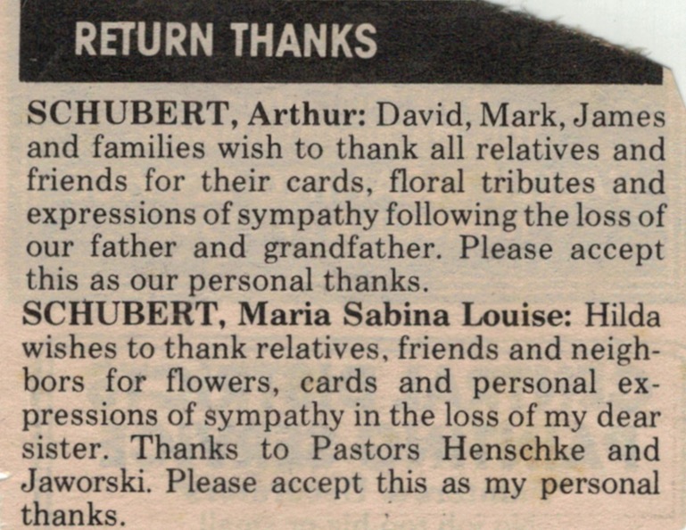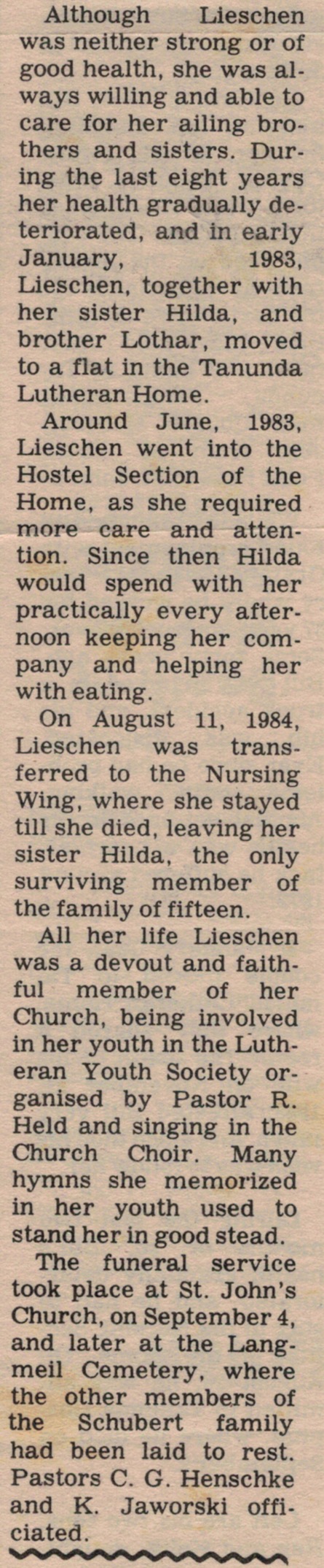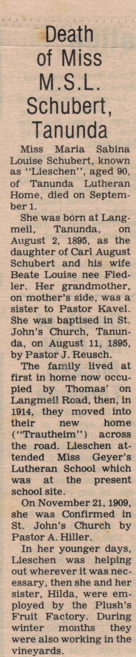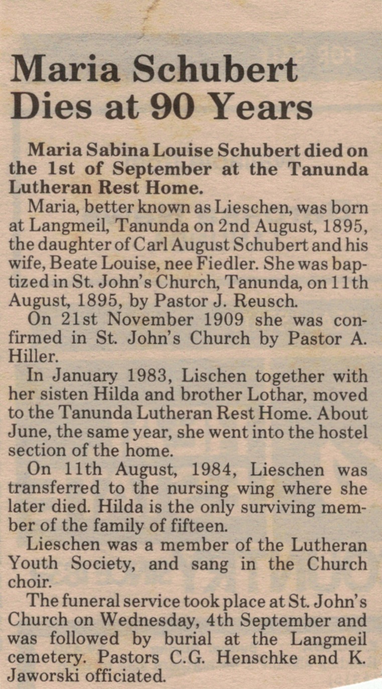 Published References (1.8.13 SCHUBERT) “Barossa and Light Herald” (Tanunda, SA), September 1985. Barossa News (Tanunda, SA), September 1985. Possibly “Barossa News” (Tanunda, SA), c. October 1985.