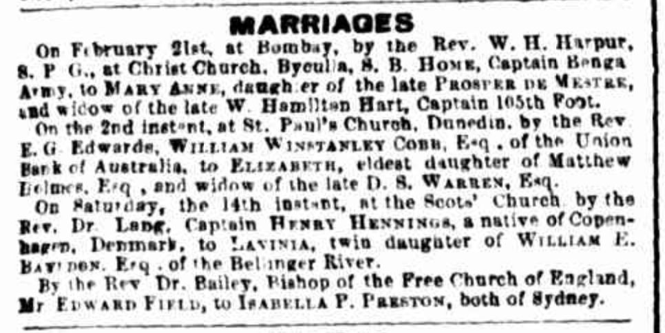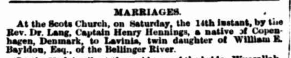Published References (1.8 BAYLDON) “Sydney Morning Herald” (NSW), Wednesday 18 May 1870, page 1 [Trove]. “Empire” (Sydney, NSW), Wednesday 18 May 1870, page 1 [Trove].