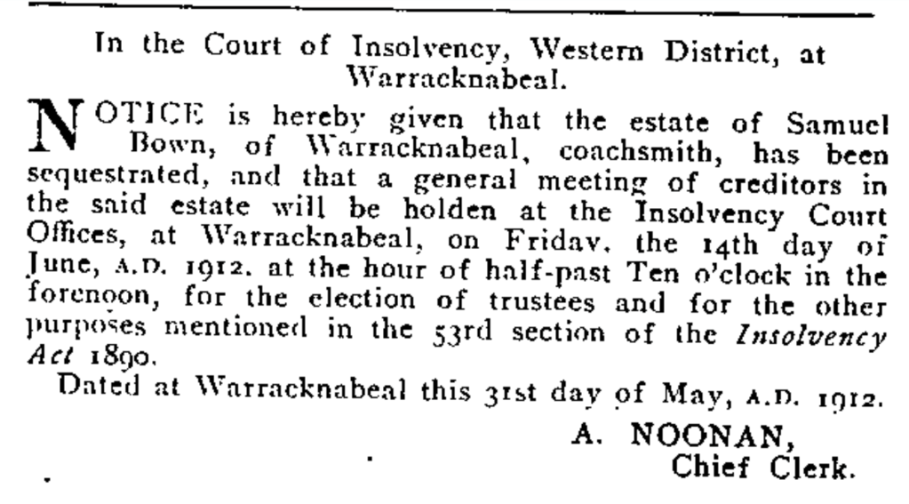 Published References (1.8 BOWN) Victorian Government Gazette, 5 June 1912, page 2216 [Trove]. “Warracknabeal Herald” (Vic.), Friday 20 March 1914, page 6 [Trove]. “Warracknabeal Herald” (Vic.), Tuesday 17 July 1917, page 4 (extract from article “The Finest Specimens”) [Trove].