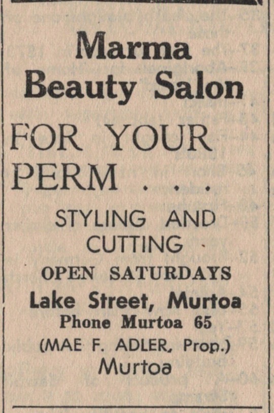Published References (1.9.2.4 ADLER) “Dunmunkle Standard” (Murtoa, Vic.), Tuesday 20 May 1969, page 4 (a repeated advertisement). “Dunmunkle Standard” (Murtoa, Vic.), Tuesday 18 April 1972, page 4.