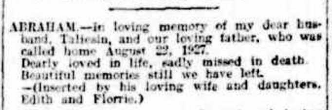 Published References (1.9 PARKER) “Argus” (Melbourne, Vic.), Wednesday 22 August 1928, page 1 (“Deaths”) [Trove]. “Argus” (Melbourne, Vic.), Thursday 8 June 1939, page 12 [Trove].