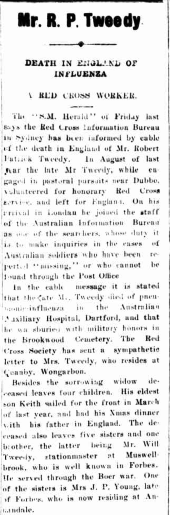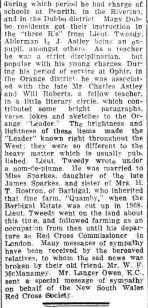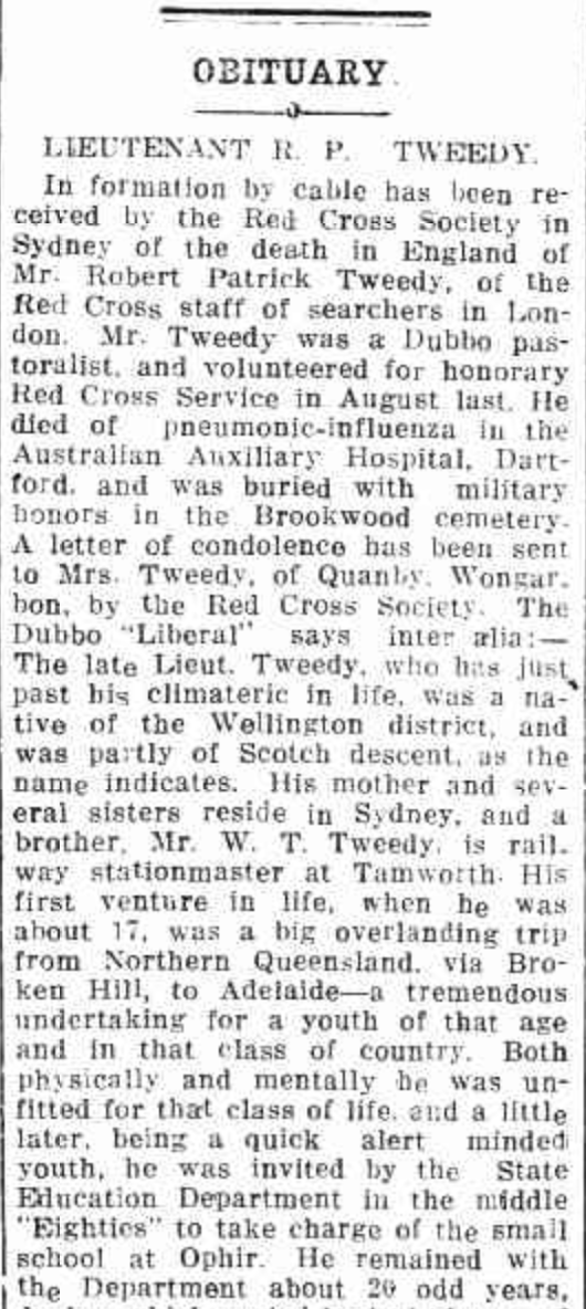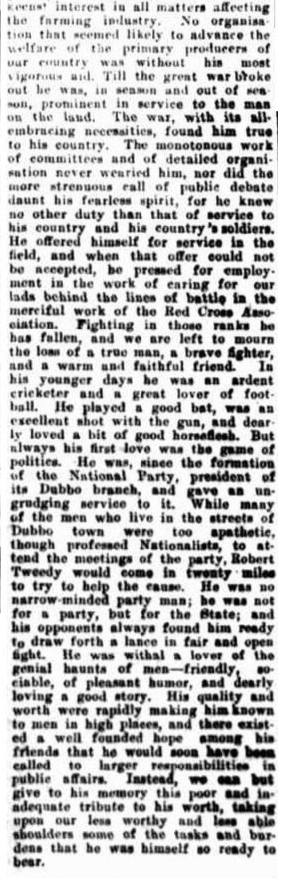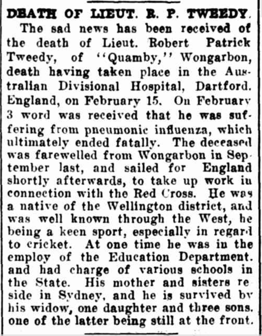 Published References (2.3 BOWN) “Dubbo Dispatch and Wellington Independent” (NSW), Friday 22 September 1916, page 1 [Trove]. “Dubbo Dispatch and Wellington Independent” (NSW), Friday 16 August 1918, page 2 [Trove]. Argus” (Melbourne, Vic.) Monday 2 September 1918, page 4 (extract) [Trove]. “Sydney Morning Herald” (NSW), Monday 2 September 1918, page 7 (extract) [Trove]. “Sydney Morning Herald” (NSW), Friday 28 February 1919, page 1 (extract from article “Summary”) [Trove]. “Sydney Morning Herald” (NSW), Friday 28 February 1919, page 6 [Trove]. “Leader” (Orange, NSW), Monday 3 March 1919, page 1 [Trove]. “Wellington Times” (NSW), Monday 3 March 1919, page 2 [Trove]. “Dubbo Dispatch and Wellington Independent” (NSW), Tuesday 4 March 1919, page 3 [Trove]. “Forbes Times” (NSW), Tuesday 4 March 1919, page 2 [Trove]. “Dubbo Dispatch and Wellington Independent (NSW), Tuesday 11 March 1919, page 3 [Trove]. “Australian Town and Country Journal” (Sydney, NSW), ,Wednesday 26 March, 1919, page 5.