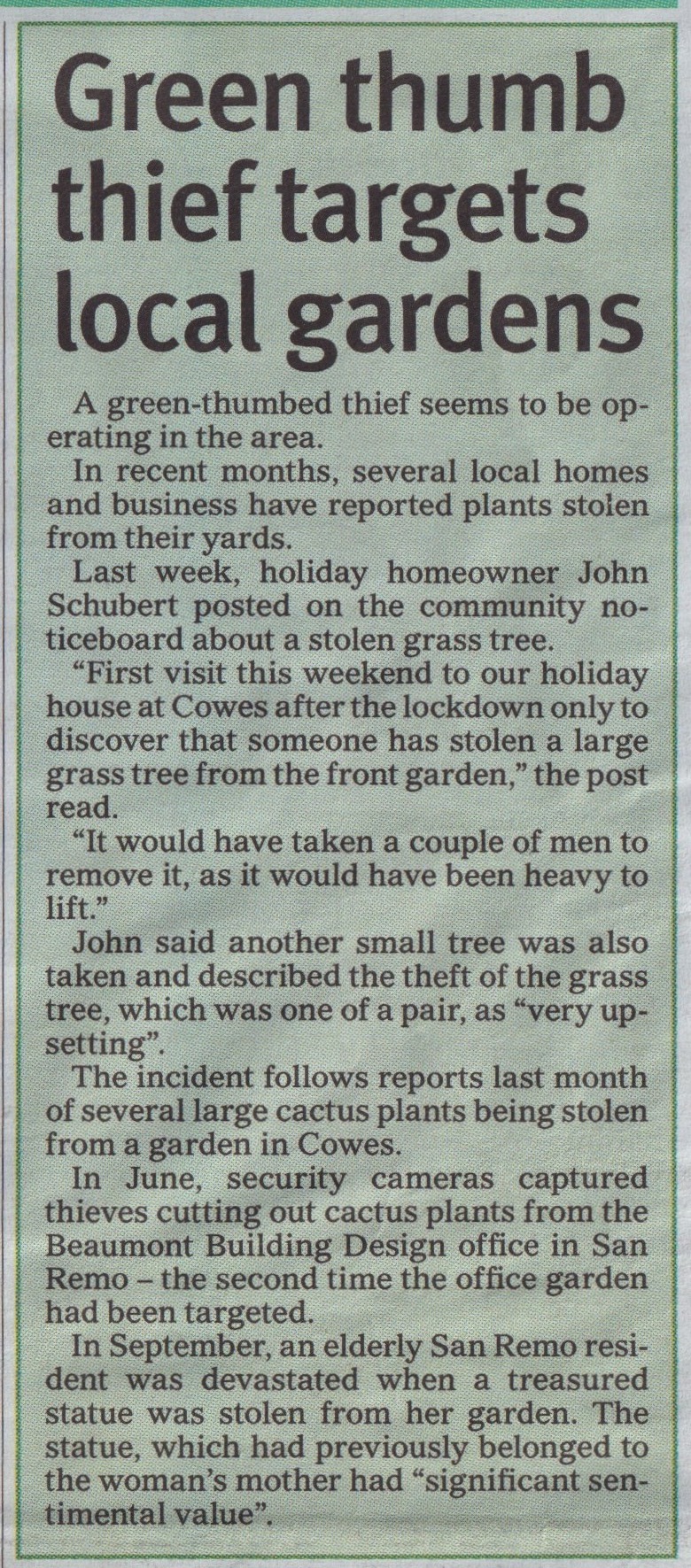 PUBLISHED REFERENCES “Phillip Island and San Remo Advertiser” (Cowes, Vic.), Wednesday 10 Nopvember 2021.
