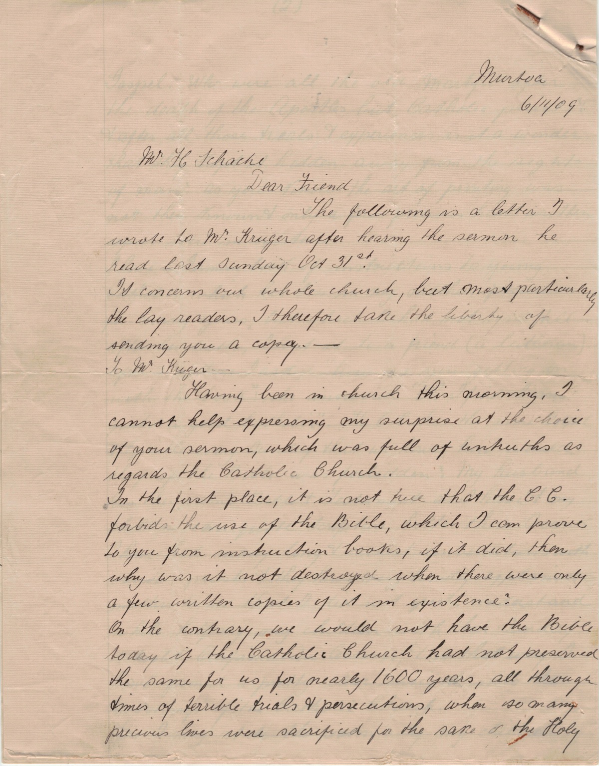 Letter to Harry Schache from Helene Rabl, 1909.